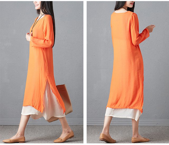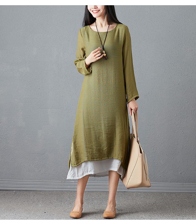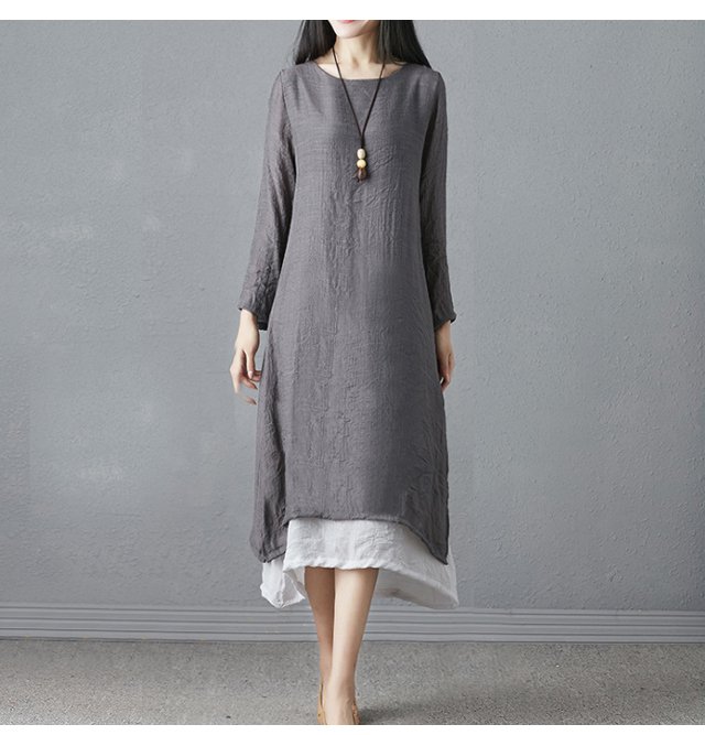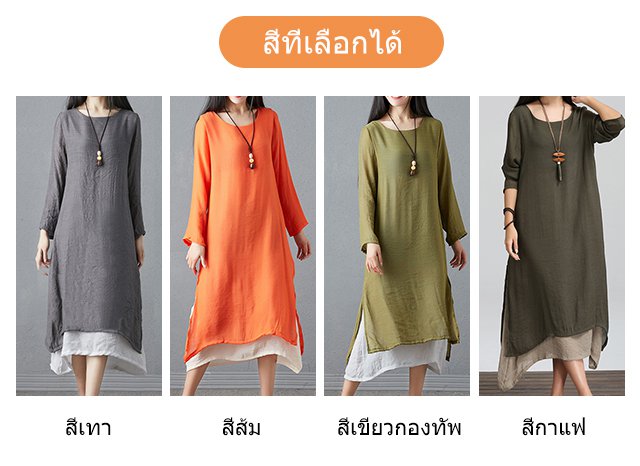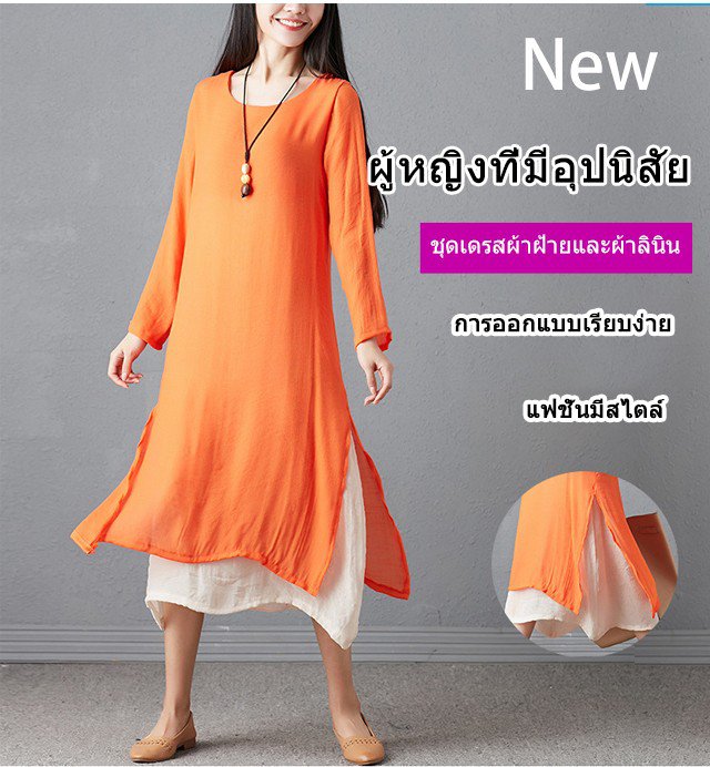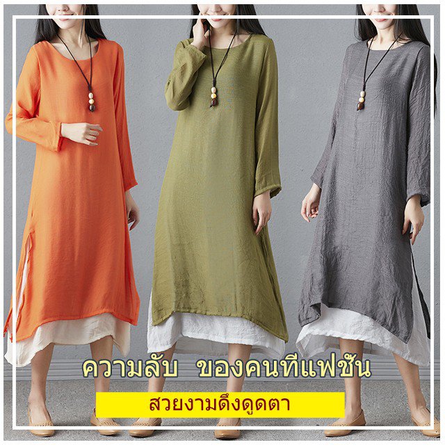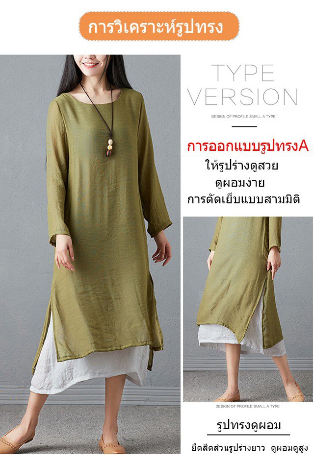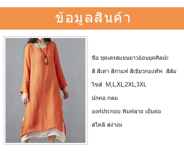 ชุดเดรสแขนยาวทรงหลวมย้อนยุคพลัสไซส์