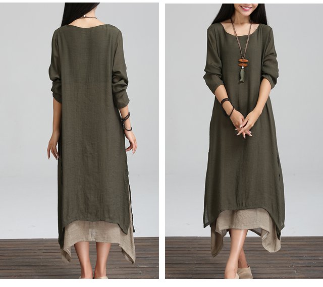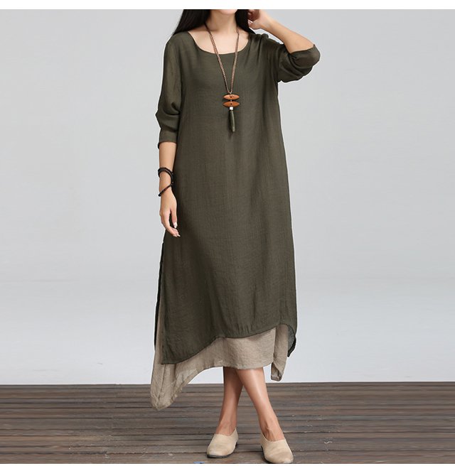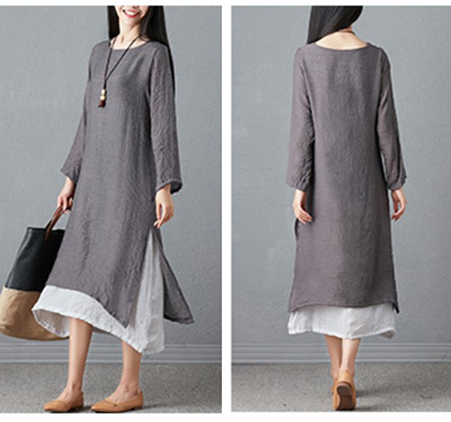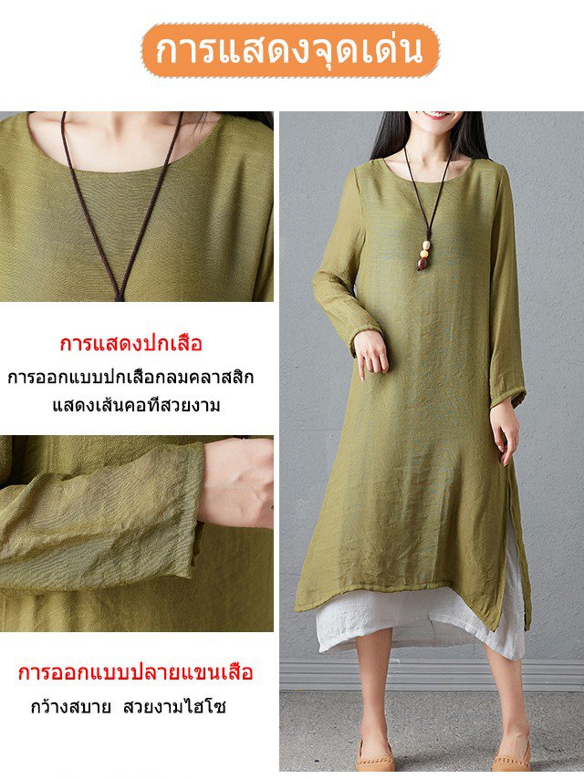 ชุดเดรสแขนยาวทรงหลวมย้อนยุคพลัสไซส์
